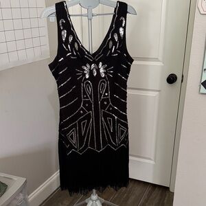 Flapper Girl Chic Black and Silver Mini Dress