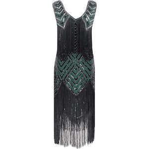 Women's 1920s Flapper Great Gatsby Roaring 20s Vintage Retro Tassel Fringe Sequin Green Dress