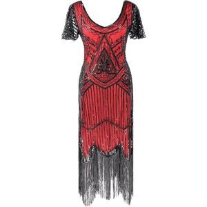Women's 1920s Flapper Great Gatsby Roaring 20s Vintage Retro Tassel Fringe Sequin Midi Red Black Dress SIZE M NEW