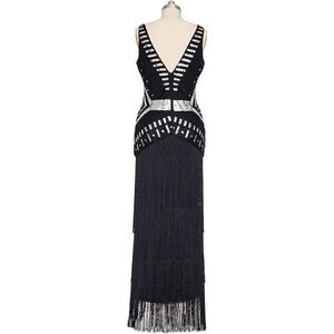 - Design: fringe hem, art deco style, 3 Layers of tassels, V-neck and deep V-back