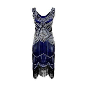 Women's 1920s Flapper Great Gatsby Roaring 20s Vintage Retro Tassel Fringe Sequin Midi Blue Dress SIZE XL NEW WITH TAGS