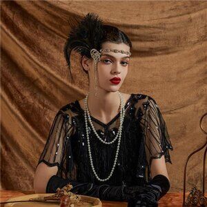 ✔ This flapper headband is made from a lushly beaded headband with pearls on either side and two perfectly curled Ostrich feathers. A perfect gatsby accessory for your 1920 flapper girl costume.