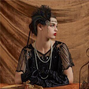 ✔ Material: Peacock Feathers, Beads,Pearls. A retro style of flapper headband hair accessories for 1920s party, costume party etc.