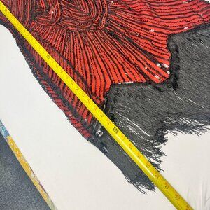 Flapper Red Black Sequin Dress With Fringe Hem Size XL