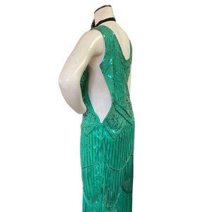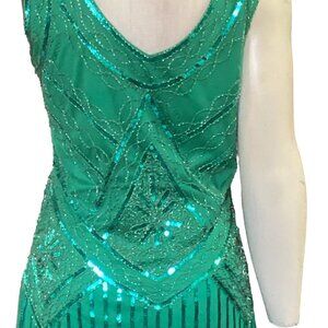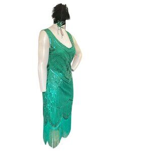 Flapper Roaring 20s Cosplay Costume Dress & Headdress Sz M Green 169C