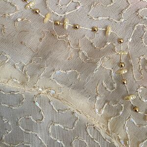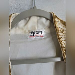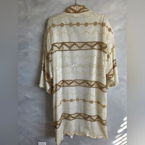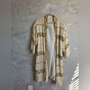 Flapper Style Gunit Cream & Gold Sequin Beaded Duster Kimono Jacket Vtg OS
