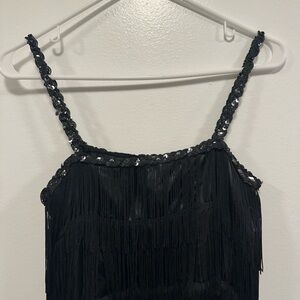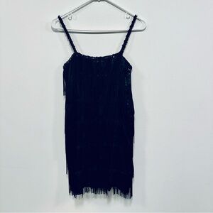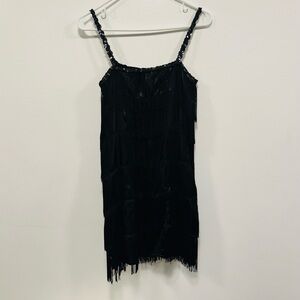 Flapper fringe dress Halloween costume! Black fringe, mini dress size medium!
