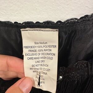 Get ready to dazzle at your next Halloween party or Taylor Swift eras tour concert reputation vibes with this stunning Flapper fringe dress costume! This black mini dress in size medium features fabulous fringe detailing that will have you looking like a true 1920s style icon. Perfect for channeling your inner flapper and dancing the night away in style. Don't miss out on this fabulous costume that is sure to turn heads!