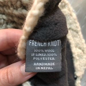Adorable flapper-style knit hat. Light green sage and cream colored yarn with beaded wing design. Soft inner lining. Never worn.