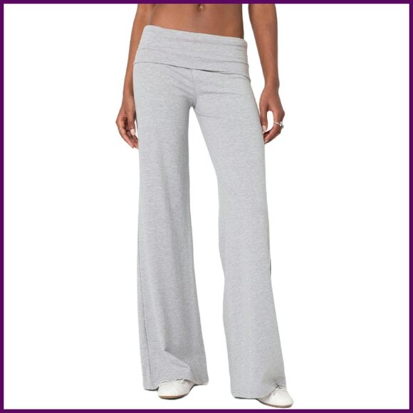 • Style: Flare bootcut design with a flared hem, solid color, and a fold-over waistband. Features a Korean-inspired, Y2K aesthetic with a straight leg and full length.