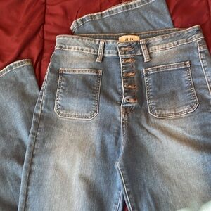 Sz 31 JBD button fly flare leg jeans. Worn couple of times. Great condition. Lots of stretch. No distressing.