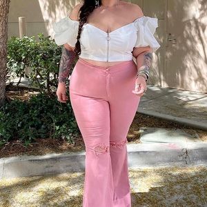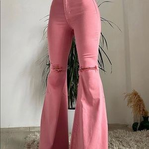 Pink bell bottom/flare leg jeans