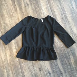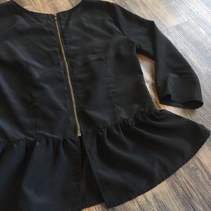 This top is gorgeous! It flares out right on your hip and opens up in the back. Quarter-length sleeve. Great to wear at work or casually.