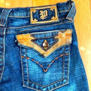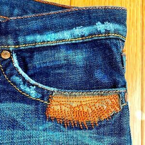 Flared Distressed Embroidered Pocket Jean w/ Boot Cut Flare Size 7