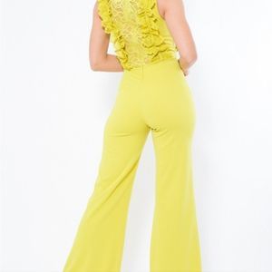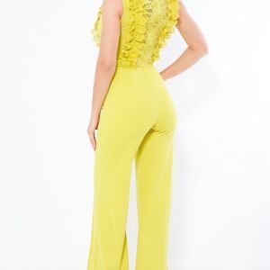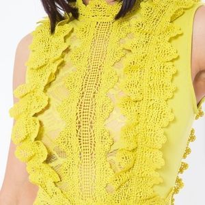 Mock Neck W/ Crochet Details, Crochet Lace Sleeveless. Frontline Flared Leg Design Zipper on the Back
