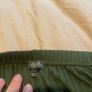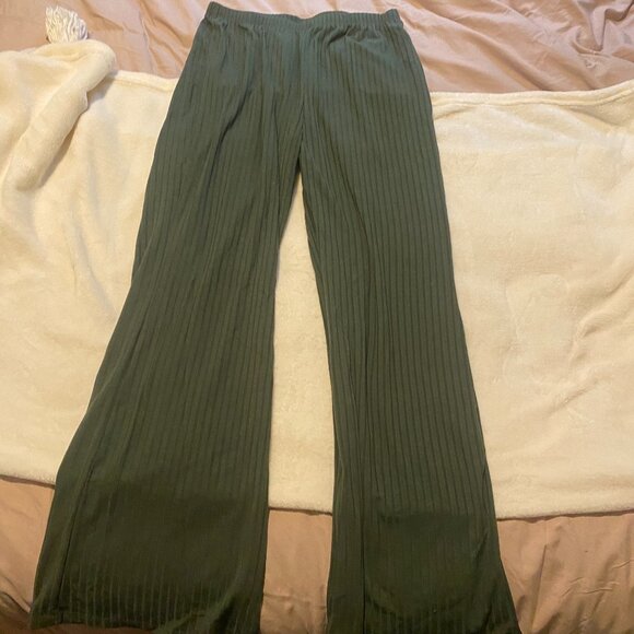 Green ribbed cloth flared pants