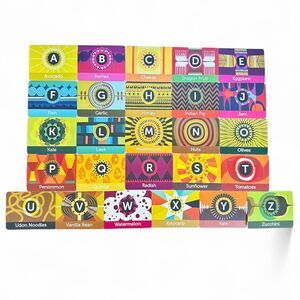 Looking for flash cards to teach toddlers their ABCs alphabet, food, fruits, vegetables? These modern, sturdy flash cards provide an excellent way for children to learn. The 26 cards are made from thick cardboard perfect for small hands and are printed with beautiful, modern artwork by Stefan Page. They're also great for decorating a nursery, classroom, or kitchen.