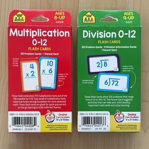Never Used - Multiplication and Division flash cards. For kids 9 and up