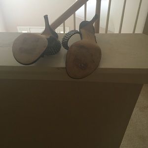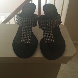 Rhinestone slides with a 3 inch heel.. Metal upper with leather soles.