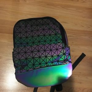 Very cool backpack that really stands out when you're under the spotlight. Interior has multiple pockets. Exterior has a water bottle holder. Great for school or your next festival! Brand new!