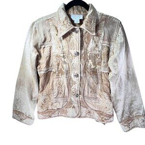 FlashBack Couture Gold Embroidered Embellished Jacket Beaded Button Down Pockets