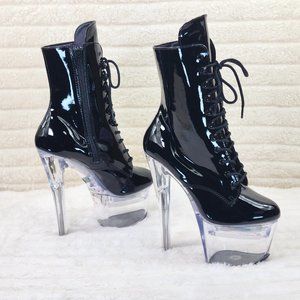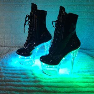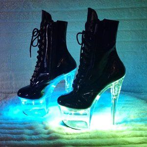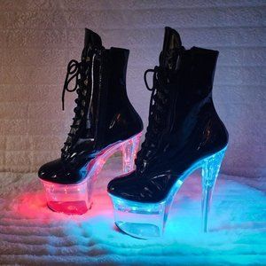 7" (178mm) Heel, 2 3/4" (70mm) Platform USB Chargeable LED Light-Up Front Lace-Up Ankle Boot w/ Multiple Static/ Changing Color Options & Light Settings new in box Brand New