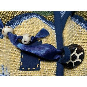 Vintage art to wear, FLASHBACK cotton tapestry jacket in size L. It features a shawl collar, single button closure, and a southwestern-inspired, cropped boho design.