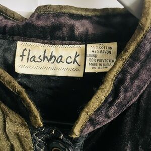 Embrace a unique style with the Flashback Women's Patchwork Jacket. This multicolor jacket features a blend of black, green, and gold tones, perfect for adding a vibrant touch to your wardrobe. Ideal for any casual outing.