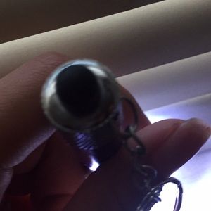 It’s a flashlight saying “mom shines”. The button works for clicking on devices such as phones or iPads and others.