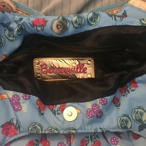 Great summer bag- not used but no tags- beautiful blue color with fruit and gold- Betsy Johnson. Flashy statement bag. Smoke free home- needs some love