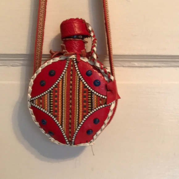 Whiskey river flask, Red leather . New never used