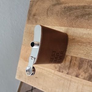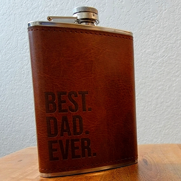 8 oz. flask incased inside a fake brown leather with the "Best. Dad. Ever." inscription.