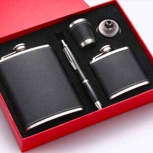 Flask Set Black 5 Piece Metal PU Leather
