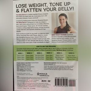 Enhance your fitness routine with the Flat Belly Barre Workout DVD. Featuring a dynamic program led by Suzanne Bowen, this DVD is designed to help you achieve a toned physique. The cover showcases a stylish pink and black theme, perfect for your collection.