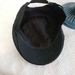 Flat Cap Drivers Newsboy Hat Black Adjustable Wool Blend Very Good Pre-owned