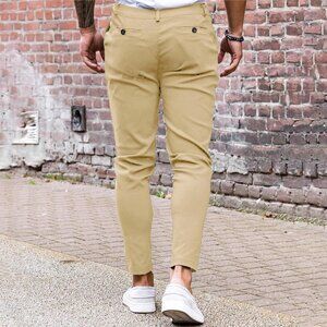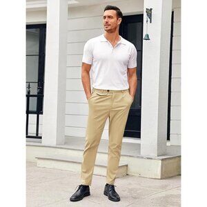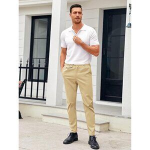Flat Front Stretch Skinny Tapered Dress Pants Casual Solid Trousers for Men's