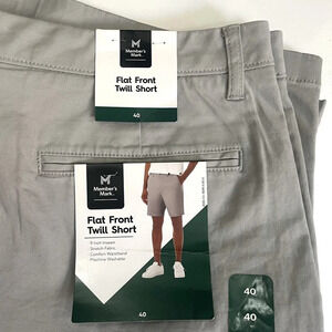 Brand new with tags, never worn, Member's Mark, Men's Size 40, flat front twill shorts, 9 inch inseam, stretch fabric, comfort waistband, machine washable, front and back pockets