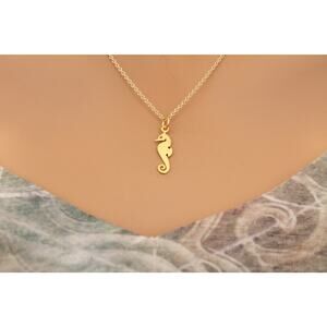 This is a Flat Seahorse with 24K Gold Plated Necklace. All necklace chains are 14/20 Gold Filled Chains. The charm is 24K Gold Plated Sterling Silver with a fine layer of nickel in between.