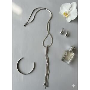 Add a touch of elegance to your look with this stunning flat silver necklace!