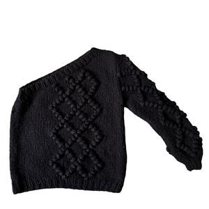 Flat White Anthropologie Sweater Womens Medium Black Bobble One Shoulder Chunky