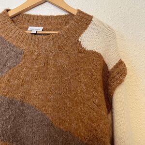Flat White Brown Camo Color Block Crew Neck Sweater Women's Size Medium
