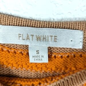 Flat White for Anthropologie Striped Knit Textured Crop Top Tank Orange Tan S