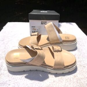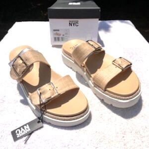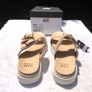 Flatform Two Strap . Size: 11 Beige Two Strap Sandals . Madden NYC . New in Box