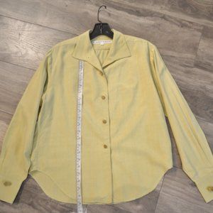 RETRO 2000 REVIVAL LICHEN GREEN FUJI SILK BUTTON FRONT SHIRT has WING CUFFS & MATCHING CUFFLINKS with SHIRT TAIL HEM.