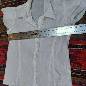 Flatiron Workshop Women Cotton Blend Button Down Shirt Flutter Sleeve Top Blouse