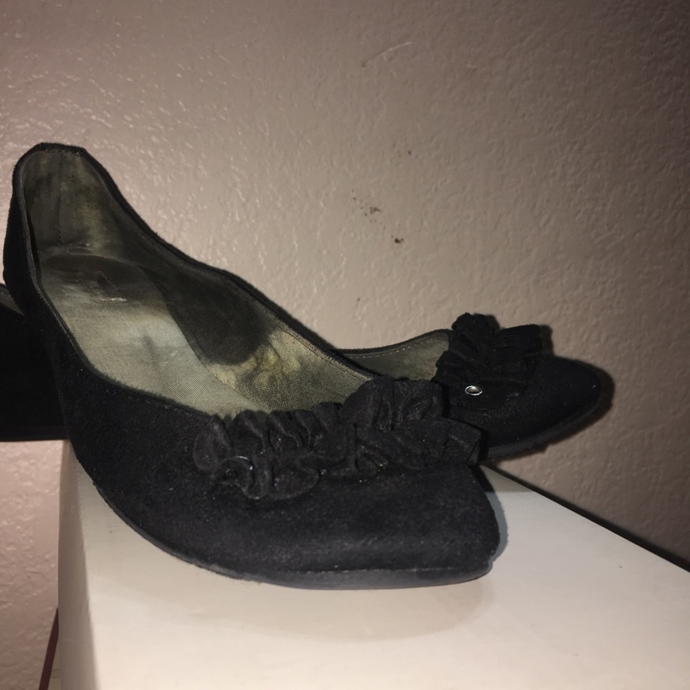 Black Suede Ruffled Flats