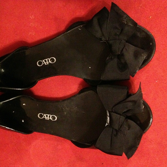 Open toed, black flats with bows. Very comfy, but don't really work for people with wide feet so passing them on.