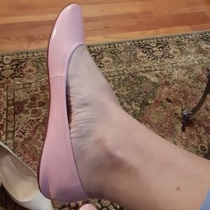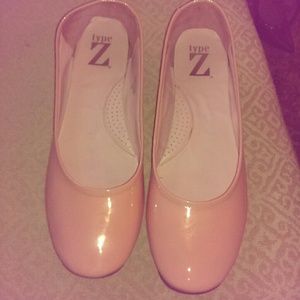 Deformed right shoe from storage. Pink patent flats. Never worn. 10-10.5 might be able to wear these.