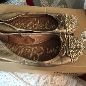 Sam Edelman gold flats with bright gold bling on toes