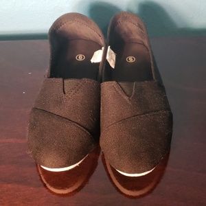 These Flats are comfortable and cute! You can wear these on a daily basis anywhere at anytime. They go with everything! Content includes :Cotton (upper) Polyester (Lining) PVC (outsole)